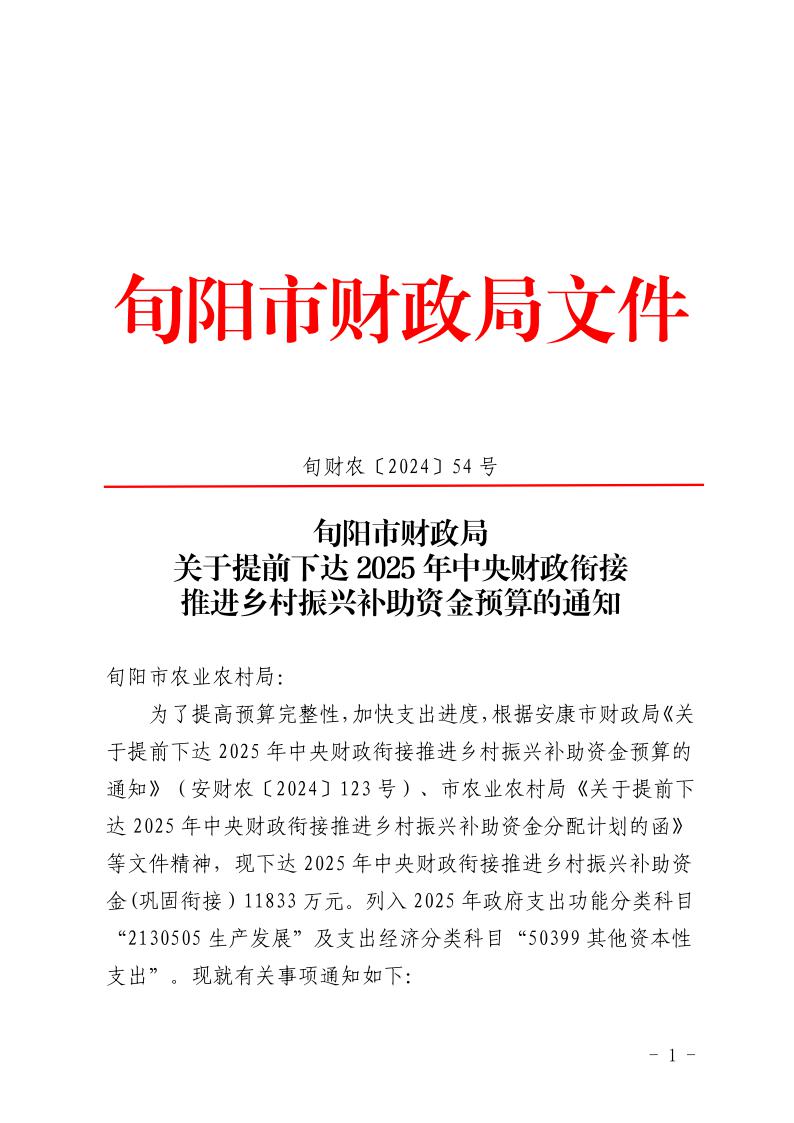 关于提前下达2025年中央财政衔接推进乡村振兴补助资金预算的通知的公告