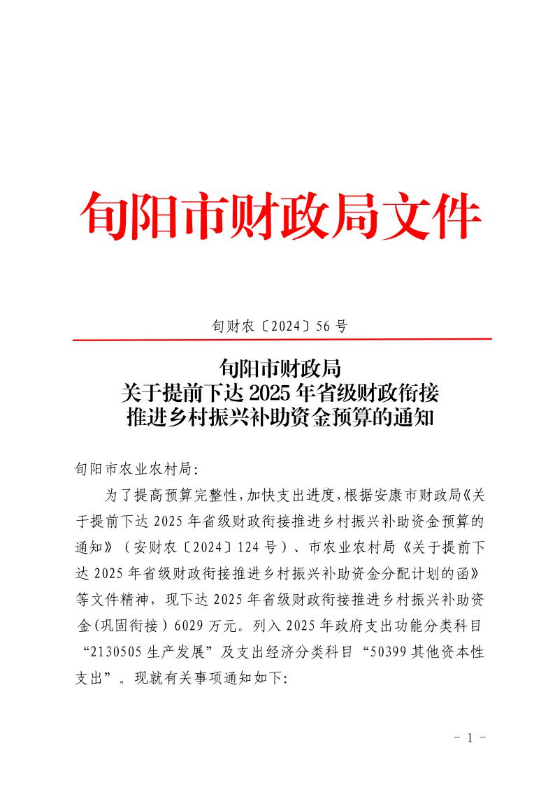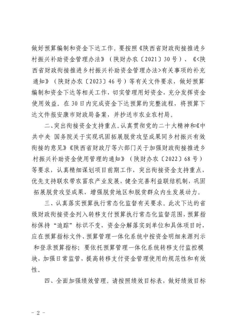 关于下达旬阳市2024年本级财政衔接推进乡村振兴补助资金预算的…