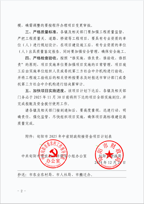 关于下达2025年中省财政衔接推进乡村振兴补助资金项目计划的通知