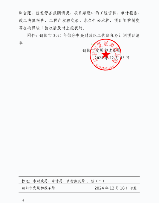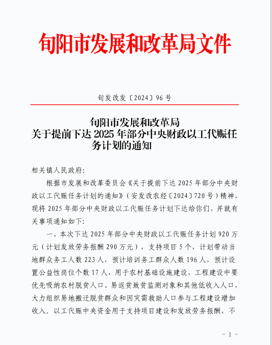 关于提前下达2025年部分中央财政以工代赈任 务计划的通知