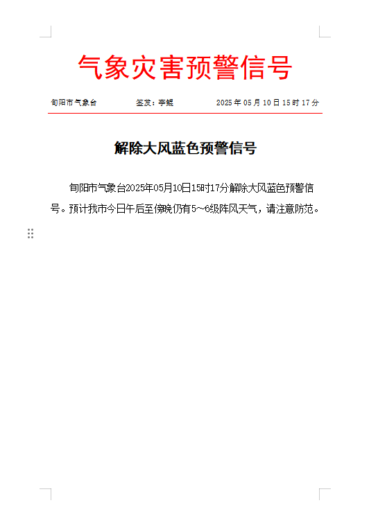 解除大风蓝色预警信号